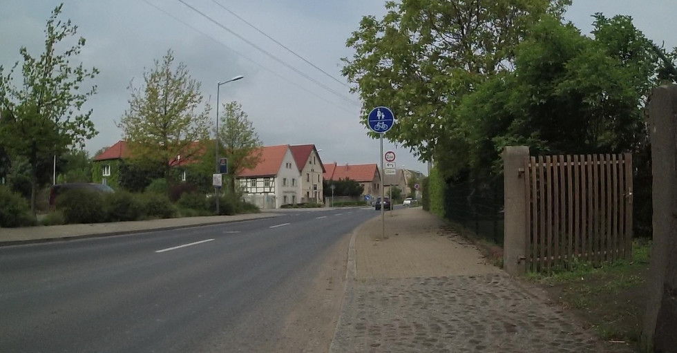 Der Radweg in Mutzchen ist ein bisschen schmal, aber man darf hier nicht wählerisch sein. Jedenfalls gibt es einen Radweg. Was aber noch geändert werden könnte und nicht viel kostet, ist das Ende. Wenn der Radweg abbiegt, sollte der Radfahrer sich gefahrlos in den Verkehr einordnen können.